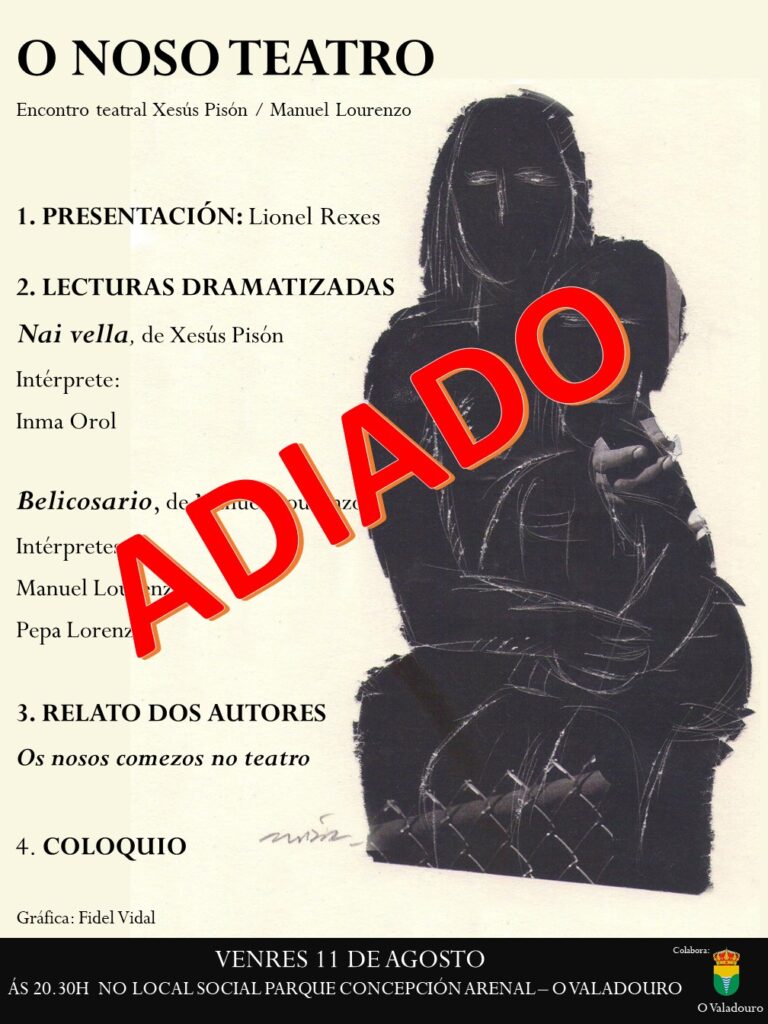 Por cuestións persoais, esta actividade adiadase, por cuestións persoais, ata novo aviso. desculpen as molestias.