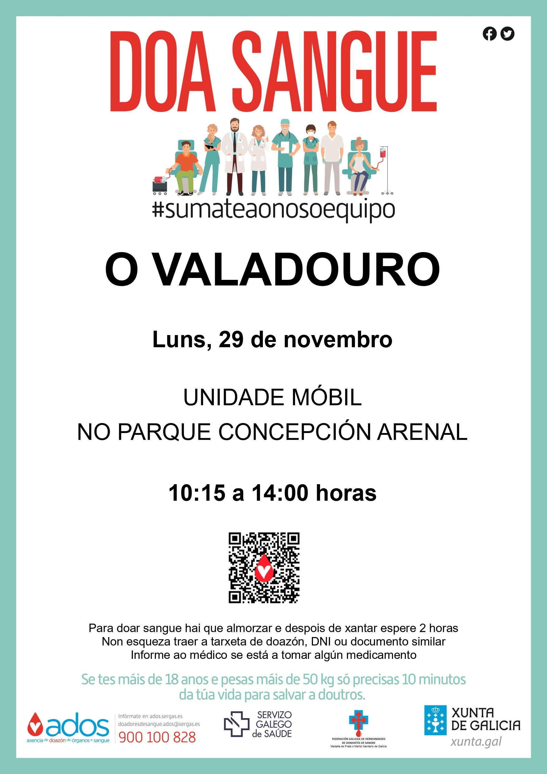 Para solventar calquera dúbida, pode contactar co 900 100 828, a web ados.sergas.gal e as redes sociais de ADOS.